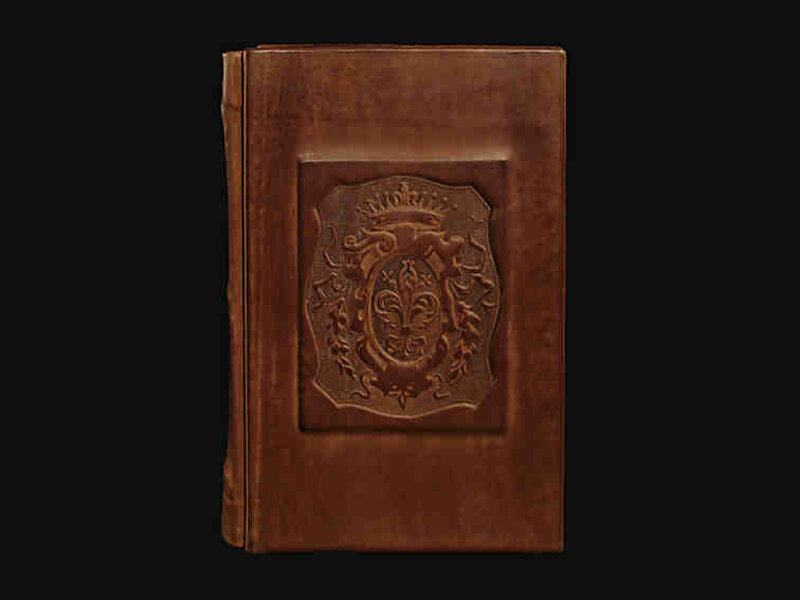 Album per Fotografie "Giglio Fiorentino" con copertina rigida di pelle . Decorazione di copertina realizzata con marchio a fuoco.